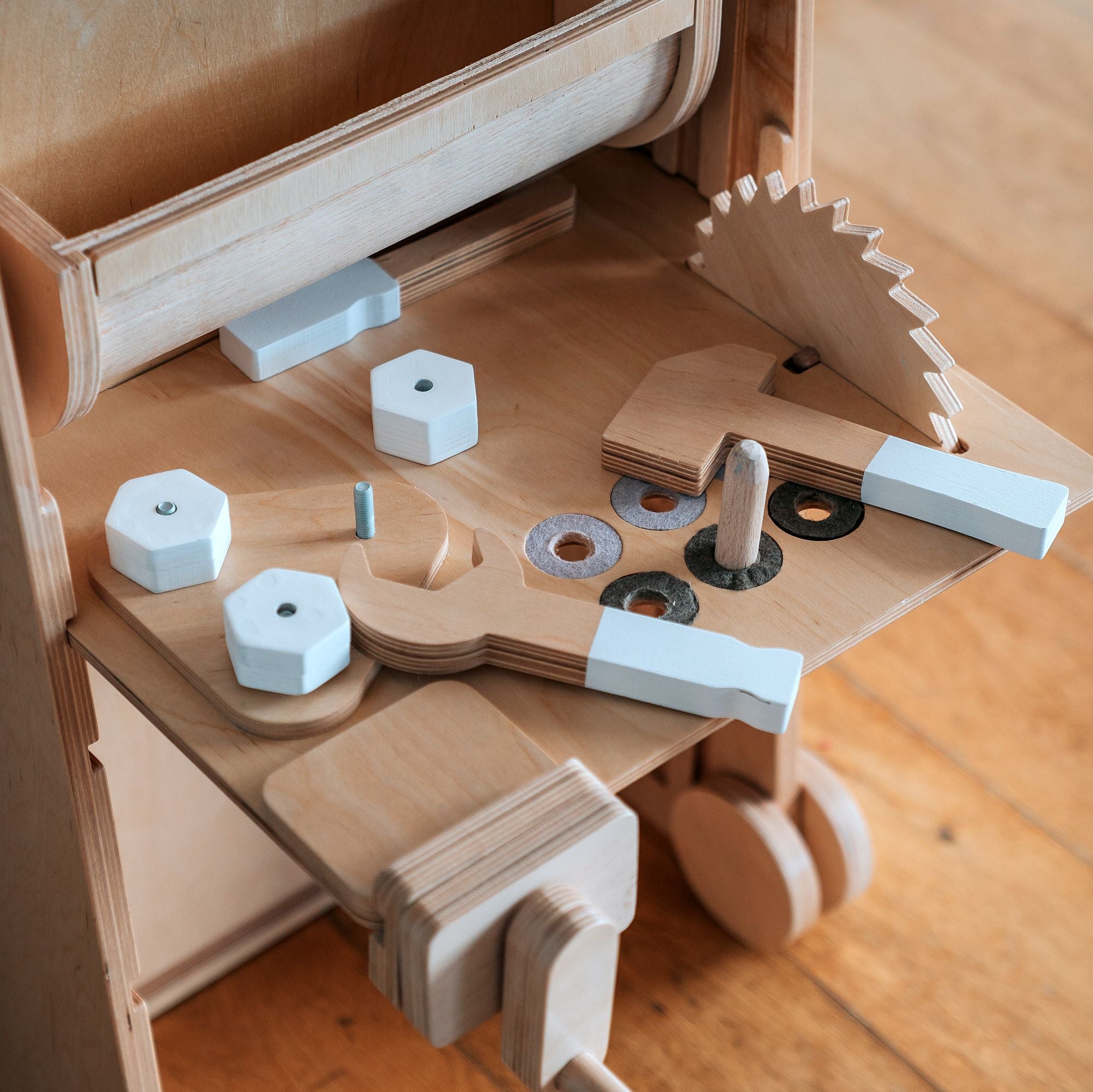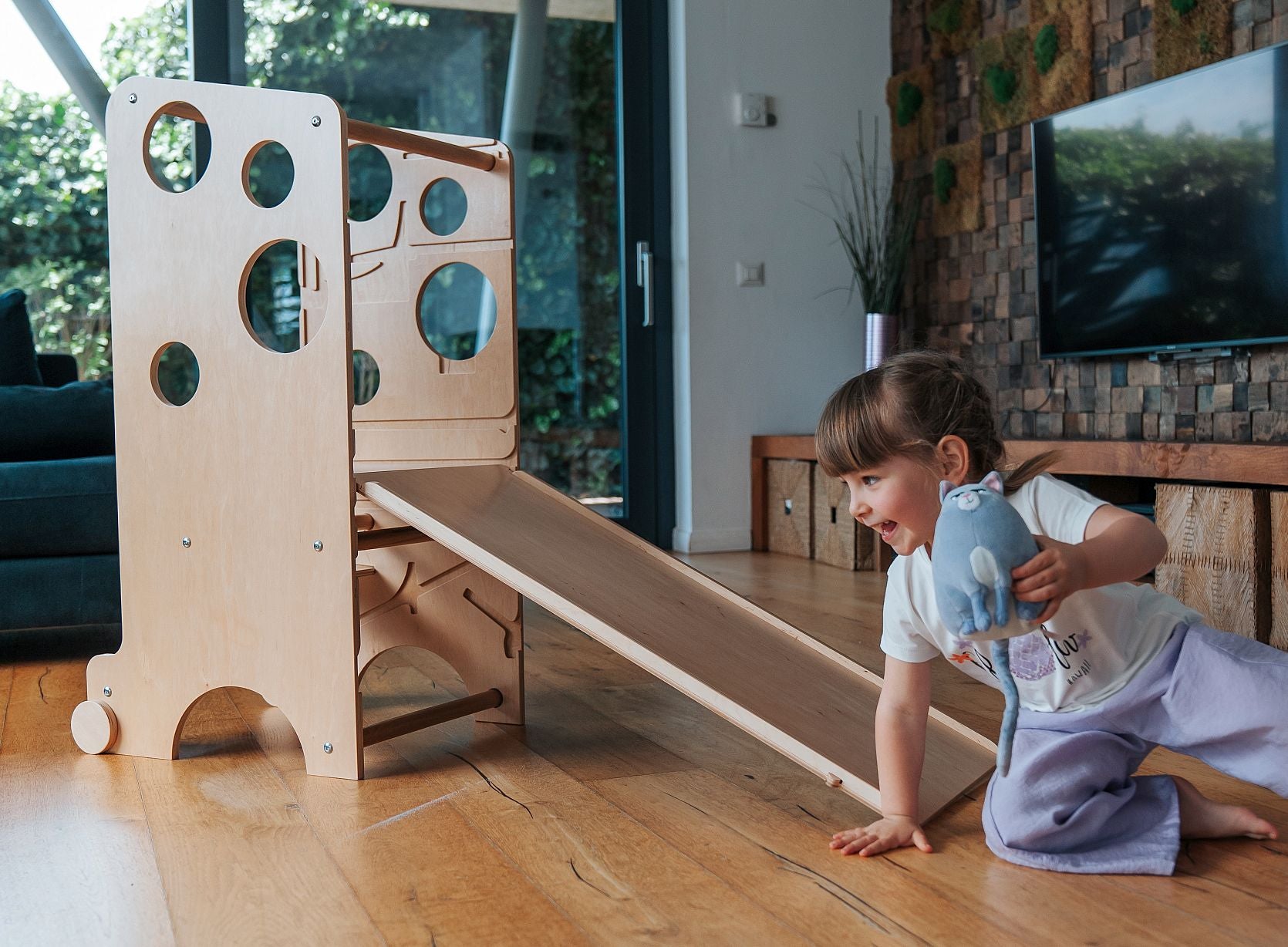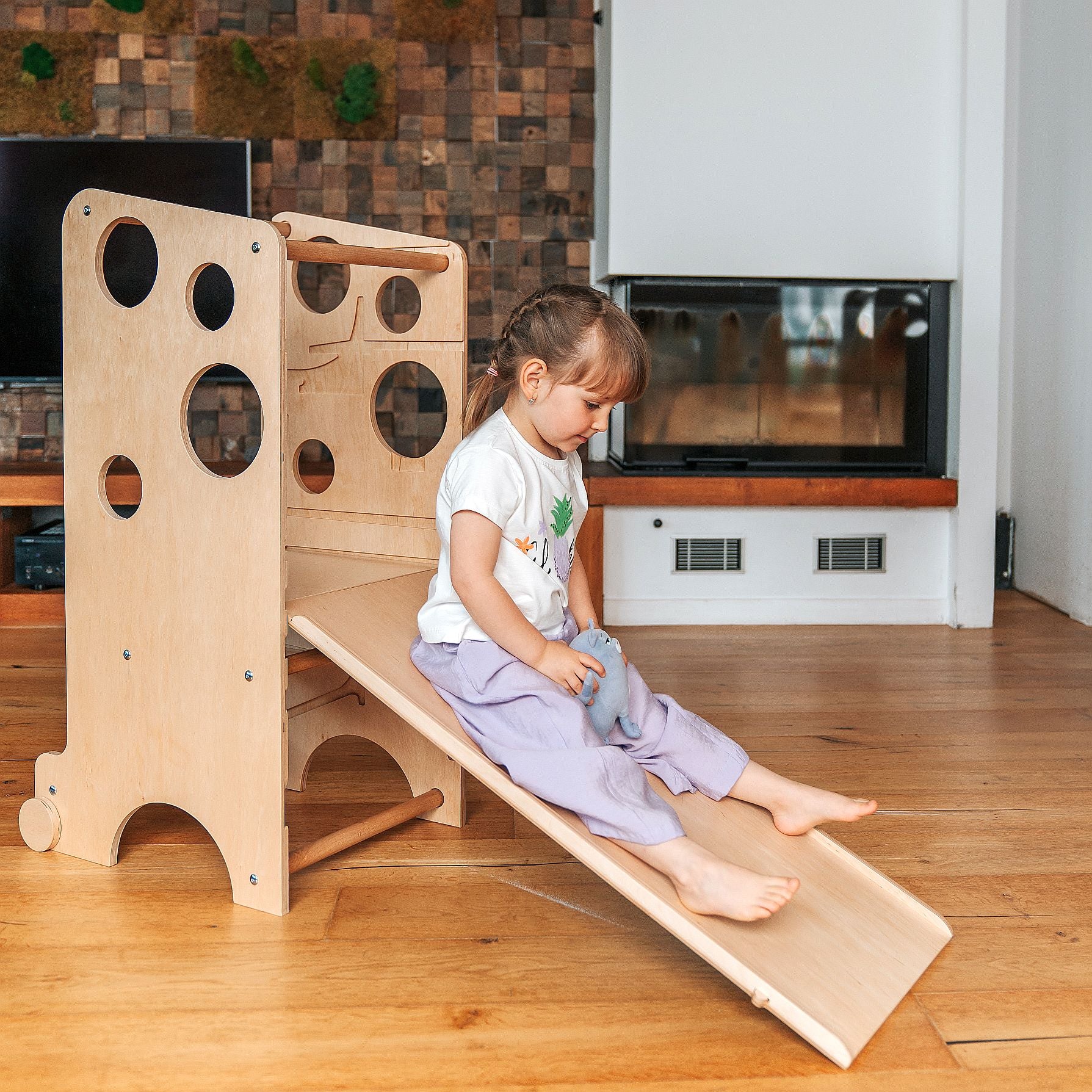Mit dem Kauf des Turms erhältst du ein Basispaket, das dir die Nutzung der wichtigsten Funktionen ermöglicht: Montessori-Turm, Mini-Schreibtisch, Hochbank, Rutsche, Schreibtafel und Tischspiele. Anschließend lässt sich das Erlebnis durch zusätzliches Zubehör und neue Aktivitäten flexibel erweitern